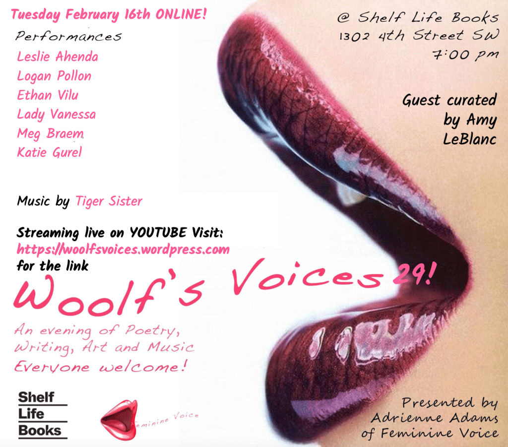 Streaming live on YOUTUBE here: link will be posted on our website on the day! Massive thanks to Shelf Life Books for digitally hosting, and Calgary Arts Foundation for their support.