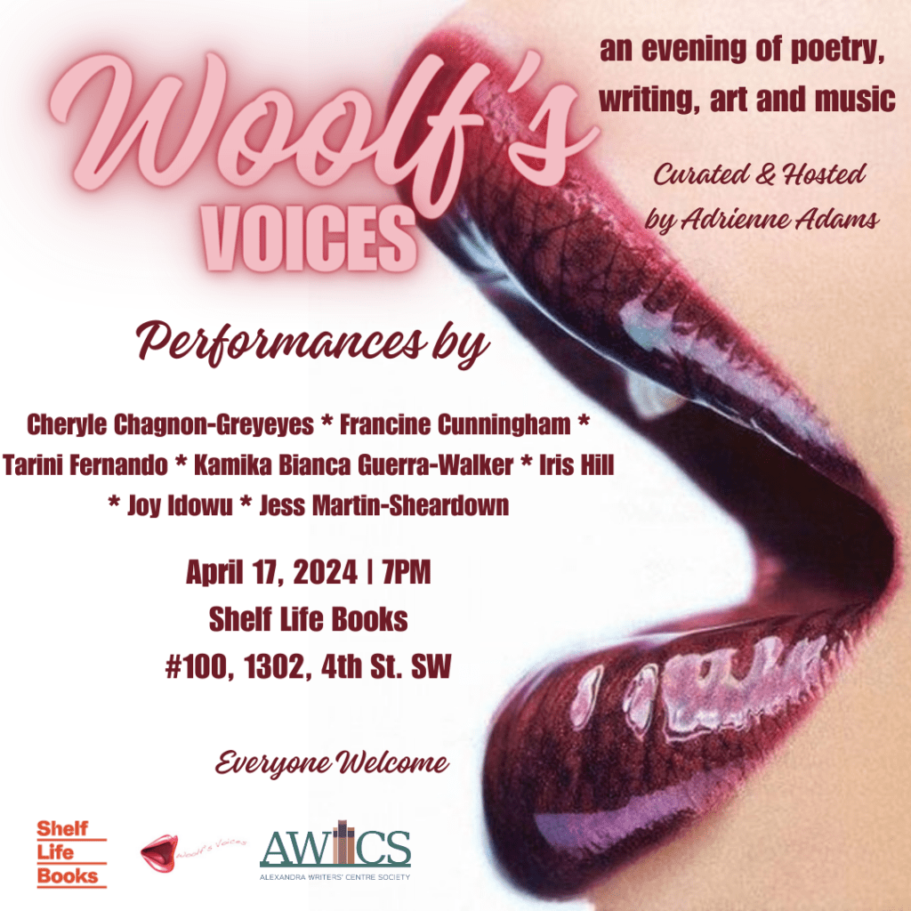Join us for a special edition of Woolf’s Voices 39 – Sponsored by The Alexandra Writer’s Center , The Writer’s Guild of Alberta and Anonymous. Register for Free Here!